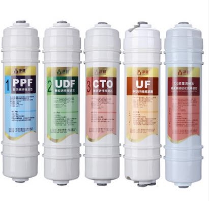 孔徑在0.01微米。作用:濾除水中的細(xì)菌、熱源、微生物、大分子有機(jī)物,使用壽命一般為12~24個(gè)月。